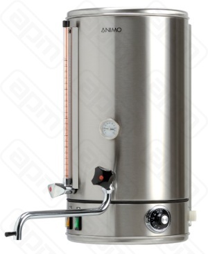 Водонагреватель ANIMO WKI 40N MARINE 380 V предназначен для нагрева и кипячения воды. Применяется в небольших кафе, барах, столовых. Предназначен для крепления на стене, что помогает экономить рабочее место при размещении в рабочем пространстве. Является морской версией. Особенности: - Корпус одностенный из нержавеющей стали CrNi 18-9 - Пыле-влаго защита IP43 - Датчик температуры и уровня воды - Имеется диспенсер в нижней части корпуса - Терморегулятор для изменения температуры нагрева установлен рядом с краном - Оснащен защитой от сухого закипания - Производительность 90 литров в час - Время нагрева: 23 минуты (с 20 до 97 C) - Температурный режим: 0 - 97 C - Время наливания 1 литра воды – 6-9 секунд
