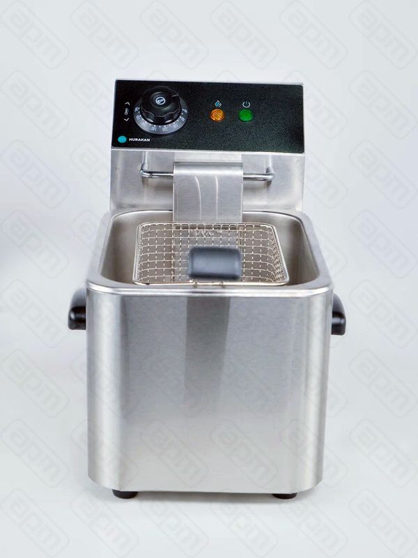 Hurakan HKN-FD4N — промышленная фритюрница для предприятий общественного питания и торговли, использующая большой объем масла или жира для приготовления разнообразных блюд. Оснащена простой и надежной электромеханической системой управления, позволяющей точно настроить температуру. Корпус выполнен из нержавеющей стали, что обеспечивает долговечность и простоту ухода.