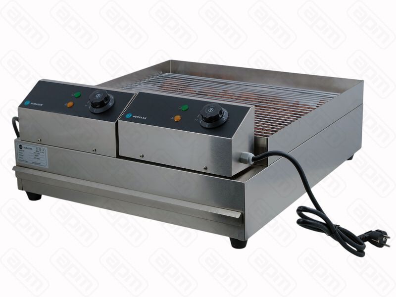 Hurakan HKN-140D — профессиональный гриль для приготовления блюд на предприятиях общественного питания и торговли. Использует натуральную вулканическую лаву, которая эффективно впитывает избыток влаги и устраняет неприятный запах. Процесс готовки проходит без использования масла, что сохраняет естественный вкус и аромат продуктов. Корпус выполнен из нержавеющей стали, обеспечивающей долговечность и гигиеничность.