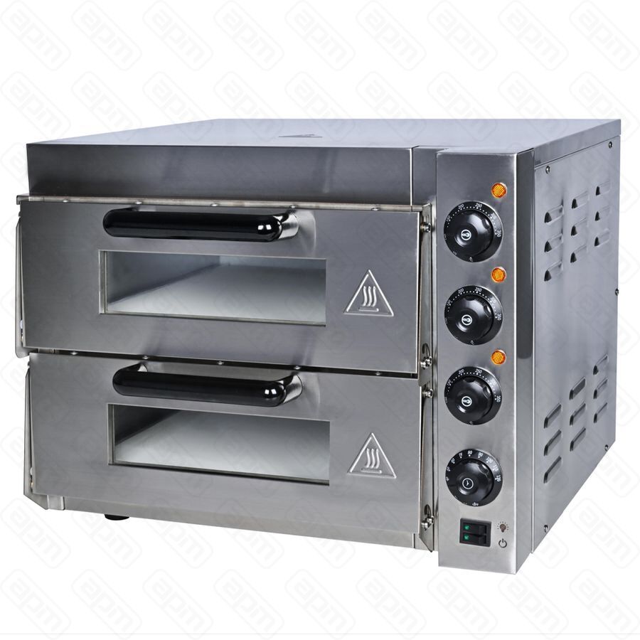 Печь для пиццы электрическая Viatto Commercial EP-2T компактная и простая в управлении. Две камеры размером 410×410×122 мм имеют внутреннюю подсветку. Внутри каждой камеры — подовый камень 400х400 мм. Предусмотрена отдельная регулировка верхних и нижних ТЭНов. Дверца со смотровым стеклом. Корпус изготовлен из нержавеющей стали.