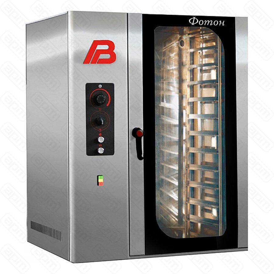 Печь электрическая конвекционная с пароувлажнением, время разогрева печи до 250°С -12 мин.., вместимость 12 противней 400х600, расстояние между уровнями 90мм, облицовка и камера печи-нержавеющая сталь, электромеханическая панель управления.