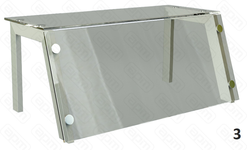 — Полка верхняя из нержавеющей стали марки AISI 304 толщиной 1,2мм и каленого стекла толщиной 8мм, Л-образная — Теплый свет, мощность 17,3Вт — Поставляется в разобранном виде — Скрытый монтаж