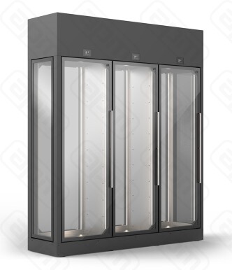 Код A1WF3HV5A/873 ALUMINIUM GREY +15PCS*M220430008; 2,5кВт, 220В, +4/+18 С, 580кг, 1725л, версия с встроенным хол. агрегатом, R290 фреон, цвет корпуса серый матовый (код 718). 3 двери со стеклом спереди, стеклянные боковые панели, глухая задняя стенка. Вместимость макс. до 630 бутылок (зависит от типа установленных полок). В данной комплектации: полки R х 15 шт, суммарная вместимость с этим типом полок до 630 бутылок "Бордо"