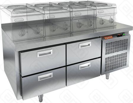 Стол с морозильным шкафом производства HICOLD (Россия), модель GN22/BT LT предназначен для использования на профессиональной кухне и сочетает в себе функциональность рабочей поверхности и морозильной камеры. Он используется для приготовления и хранения пищевых полуфабрикатов.